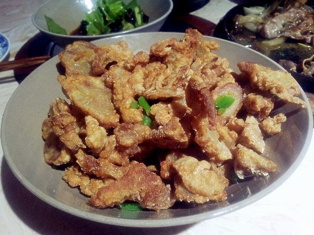 四川小酥肉:刚吃的时候感觉有些淡,蘸了前面油麦菜的料吃的,后面倒是觉得越来越好吃了,有些像椒盐排条,但是要更脆些。
