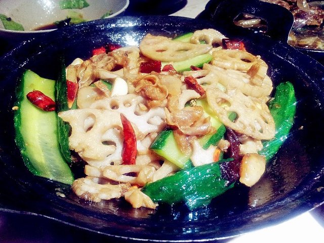 干锅黄瓜藕片:个人超爱藕片,看到有藕片当然是必选菜,藕真是怎么烧都好次,黄瓜很清口。