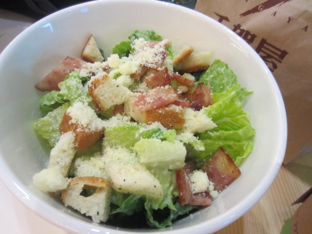 凯撒色拉不错。 里面的内容很丰富,除了蔬菜和很多块培根外, 还有手磨的