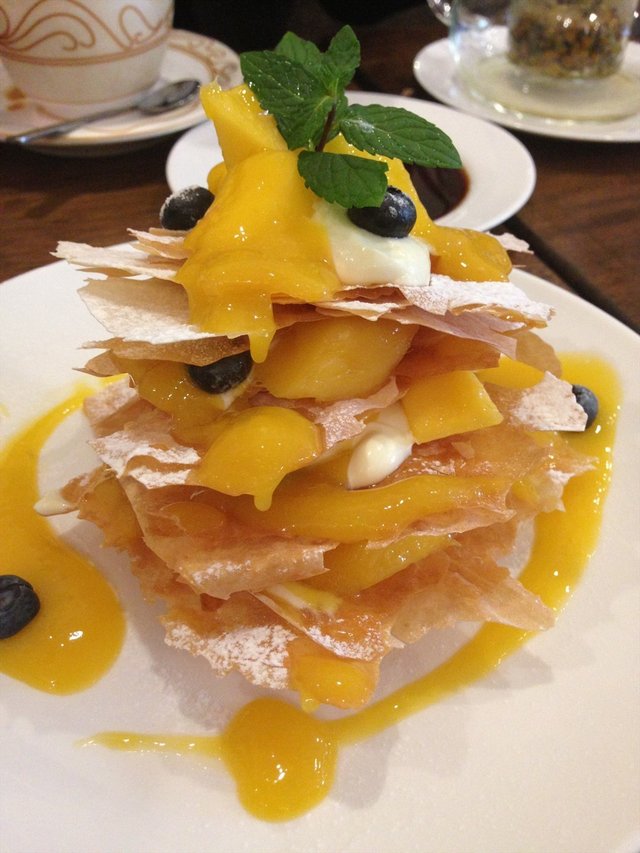 草莓千层塔:很创新的甜品,几层薄脆饼中间丰满的奶油和草莓还有草莓酱,很是好味道。。。外观也很美丽,很美貌哦~虽然吃起来有点困难~因为脆饼和容易碎哈~比较适合和闺蜜一起品尝~~