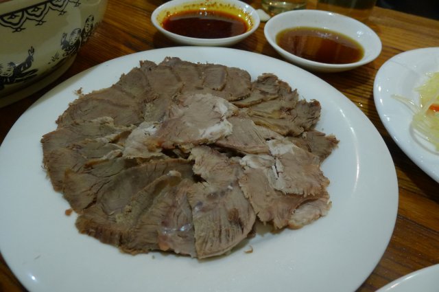 @酱牛肉(麻辣)/38块,这个我倒是觉得一般,他那个麻辣估计是那个酱料,有两碗,一碗应该是酱油,一碗是带点辣辣的酱油,吃着沾酱的牛肉还是可以的,但像这种酱牛肉都有点老,所以不是我的菜啦~好像他们那几个男的还挺喜欢的