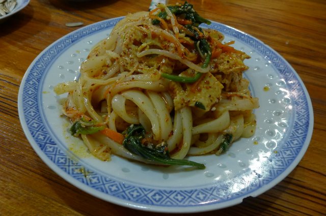 @天水面皮/12块,就是有点像凉皮那种,辣辣的,里面有些绿色蔬菜,黄豆芽,豆腐皮这种之类的,听大叔说,里面的那个豆腐皮是精华,虽然我不是很喜欢吃,但怎么样还要尝两口。感觉豆腐皮还行,豆腥味不重,但我更喜欢哪个凉皮配着黄豆芽吃,因为会有脆脆的口感。所以要是里面配菜再多一些就更好了~