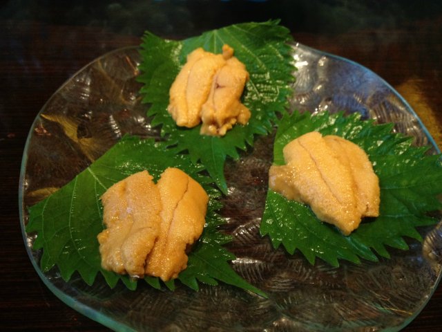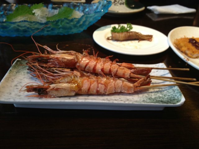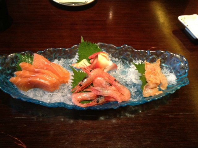 上来当然是先吃几轮刺身啦,三文鱼、北极贝、甜虾、海胆都是必点的。食材很新鲜,甜虾略微有点小,但是口感还是很好的,十分鲜甜。海胆吃多了会有点腻。