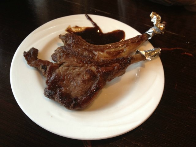 羊排有点老,肉质偏硬,嚼起来有点费劲。