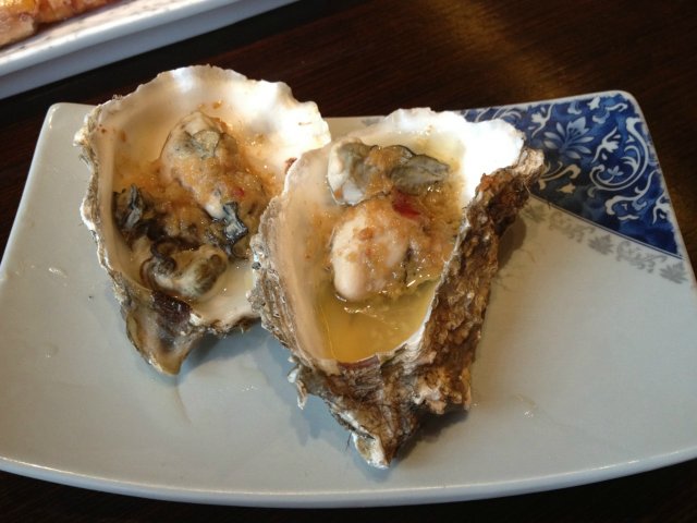蒜蓉生蚝个头也很大,都是新鲜的,肉和壳是连在一起的。