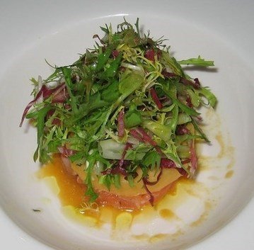 生鲜三文鱼塔塔 配木瓜 沙拉菜 & 鲜香酱汁(35):这个沙拉的三文鱼是粒状的,感觉比较有存在感,吃起来。