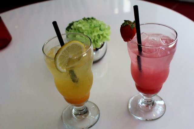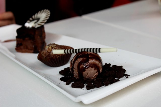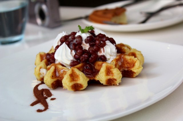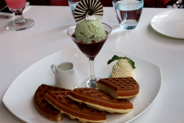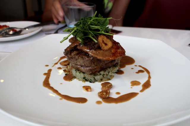 朋友团购的下午茶套餐。然后又加了七夕情人节套餐和单点的牛排。。 下午茶:珍珠糖烈日松饼3选1 红豆牛奶 1份 30元 香蕉巧克力 1份 35元 草莓卡士达脆饼 1份 40元 以下4选1 香橙柠檬气泡水 1杯 35元 蜂蜜柠檬冰茶 1杯 35元 锡兰红茶 1壶 55元 美式咖啡(冰/热) 1杯 32元 最高价值 团购价 95元 38元 我的是红豆牛奶珍珠糖烈日松饼加香橙柠檬气泡水。 松饼很美貌,饼皮香脆,顶上淋得红豆和奶油甜而不腻,小巧精致。 柠檬气泡水清爽诱人,卖相很好。 情人节套餐是朋友两个小夫妻点的,我就跟着沾沾光。 520一套,两人份。 餐前面包是欧式的,涂涂黄油蛮好吃 前菜是泰式三文魚水果沙拉,里面有烟熏三文鱼、柚子粒、荔枝肉,三文鱼量足,沙拉清爽正适合夏天吃 主菜是澳洲菲力牛排 配法式鹅肝佐羊肚菌汁。这个给力的。超大块的鹅肝,厚厚的菲力牛排加上少有的羊肚菌汁。好吃的。 女孩子是香煎海鲈鱼佐青酱汁蕃茄莎莎 饮料朋友选了草莓优格气泡水 甜点是浓情巧克力拼盘(巧克力球,蛋糕,冰淇淋) 还送了情侶钥匙圈 加点了一份奶油土豆泥,20米就可以了 丰盛的一餐。