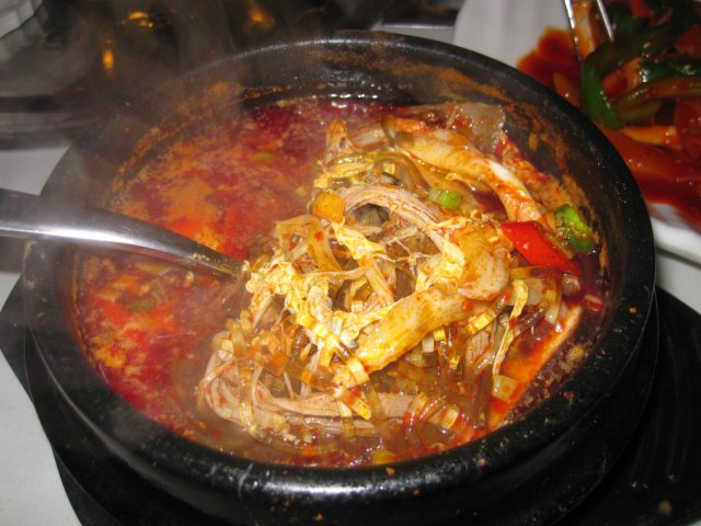 美食体验总结:服务不错。小菜很地道。牛肉汤很入味。地方特色浓郁。值得品尝的一家韩式餐厅。下次去试试烤肉哦。