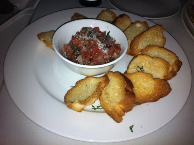 烤法棍配番茄莎莎 法棍烤的很好 松脆的蒜香味 番茄莎莎 相对比较清淡 搭配的蛮清爽的