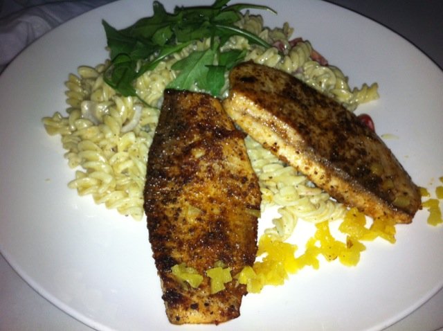 盘煎红鲷鱼柳配螺丝面 还可以吧 我对意面一向没爱的