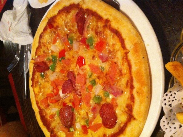 美式餐厅~ 忘写手机等级32014-07-047 浏览 关注 团购去的,环境不错,有种美式餐厅的感觉。团购的套餐包含一份湖人披萨、薯条和千丝万缕虾,还有两杯可乐~58也不算太贵。披萨料挺足,就是上菜慢。而且饼不脆~咬着还挺费劲~薯条味道不错,很粗很脆,番茄酱一般。还加了芝士蛋糕,芝士不是很重,香甜可口~朋友还要了份沙拉,千岛酱放的好多,感觉不错。以上食记乃用户个人意见 , 并不代表OpenRice之观点。赞好分享美式餐厅 LAKER'S PIZZA https://s.openrice.com/KtLT1m096uB00检举 张贴 评分4味道4环境4服务4卫生4抵食用餐途径堂食