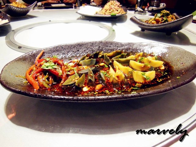 老昆明烧椒皮蛋 marvely等级42014-06-147 浏览 关注 这是一道老昆明的传统菜肴,其中的菜椒,是被用火炙烤过,和皮蛋装盘的。不过我们都忽略掉了菜椒,而重心都放在了皮蛋上。蛋白一点也不松散,有着胶质的口感。蛋黄有灰色和黄色两种,灰色比黄色软一些,黄色的则同样有着弹弹的质地。我们忽略的菜椒,在酱汁中给皮蛋带来了酸甜微辣的味道。以上食记乃用户个人意见 , 并不代表OpenRice之观点。赞好分享老昆明烧椒皮蛋 雲上云源生态云南菜 https://s.openrice.com/KtLT100JI4B00检举 张贴 评分3味道3环境3服务3卫生3抵食