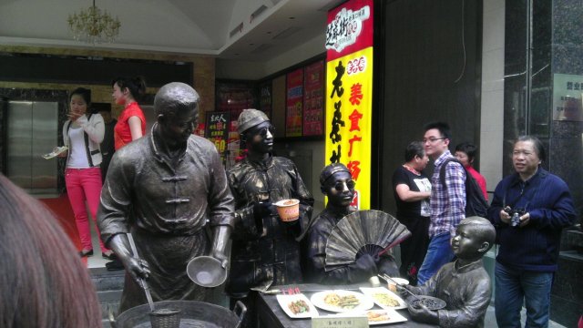 老蔡林记 hc198387等级42013-05-2024 浏览 关注 上周六专门跑到江汉路步行街找的这家店,门口摆了一老者和一小孩的铜人雕塑,中间还有两个真人秀,那个化妆和神情动作真是逼真啊,这个宣传真是给力,围了一圈人在拍照,顶不住诱惑进到了这家店,里面的环境还是很不错的,其实就是一个小型的美食城,到这家来自然是要尝尝他家的热干面了,面条比较粗,吃起来很有劲道,配料给的还蛮齐全的,那个芝麻酱不是黑色的那种,但是味道很香浓,4元一碗,性价比还蛮高的,就是购买需要存钱到消费卡里面刷卡消费,吃完再去退卡退钱,这点比较麻烦!热干面¥4以上食记乃用户个人意见 , 并不代表OpenRice之观点。赞好分享老蔡林记 老蔡林记 https://s.openrice.com/KtLT1G0r9m500检举 张贴 评分5味道4环境4服务4卫生5抵食推介美食热干面¥4用餐日期2013-05-18