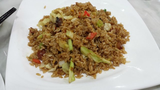 其实就是酱油炒饭,加入了腊肉以及一些蔬菜,吃着吃着发现里面还放了鱼籽,小粒的红鱼籽,没有特别的香味及鲜味,显得有些鸡肋~