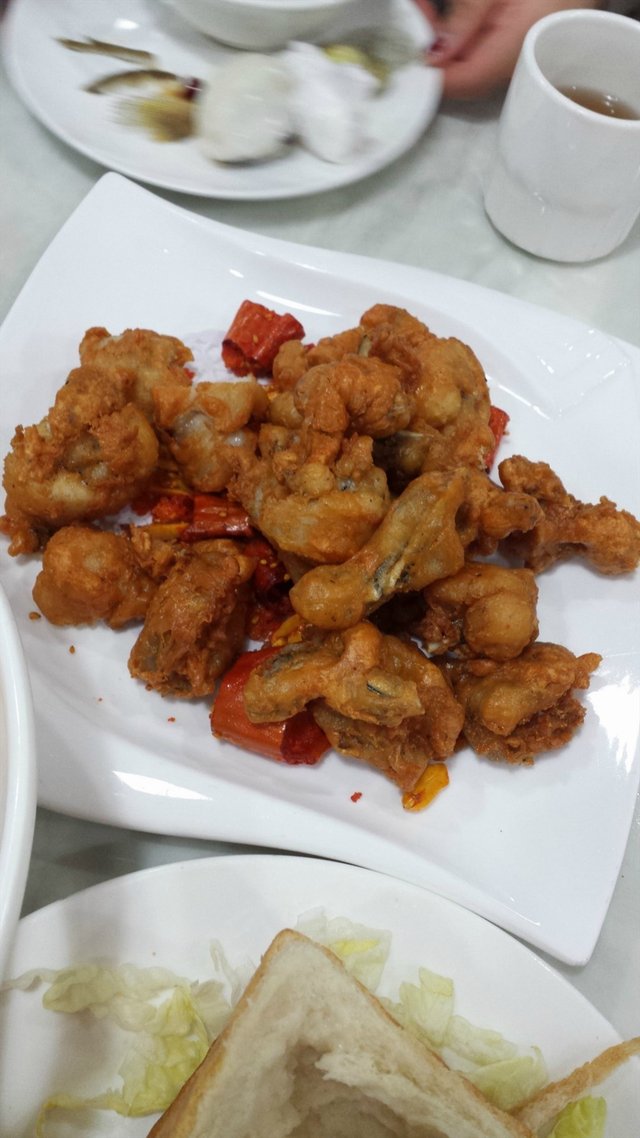 量很大,一盆油炸得外脆里嫩的牛蛙香气扑鼻,色泽金黄,裹粉不厚,参杂着些辣椒,味道虽不惊艳但也不差!