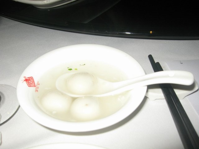 点心是芝麻汤圆,糯米皮很香糯,里面的芝麻馅儿甜度也挺适中的。
