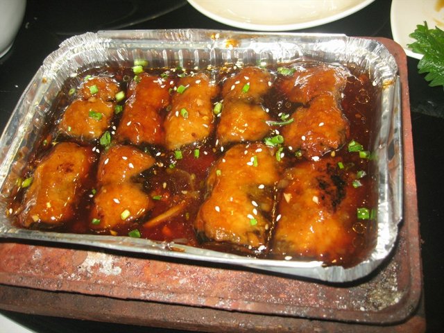 铁板茄子,茄子里头酿了一些肉,酱汁调配得很不错,鲜香入味。