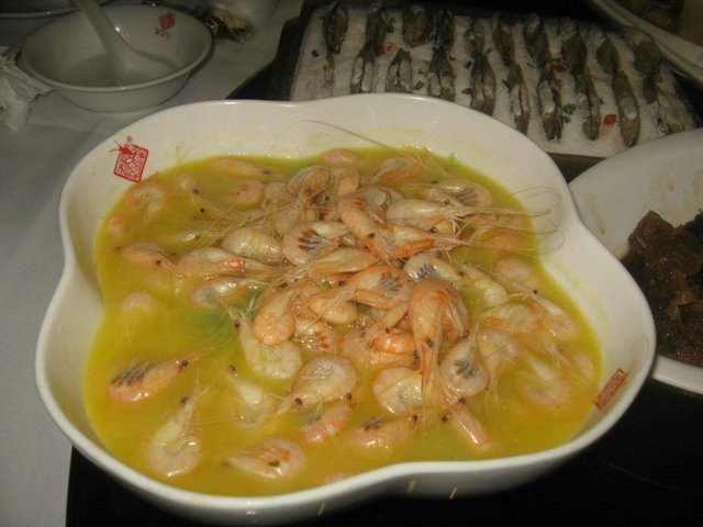 金汤白米虾,白米虾的选材很新鲜,有一些还是籽虾。虾本身就很鲜美了,再加上浓稠的金汤调配,好鲜的说。