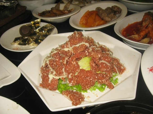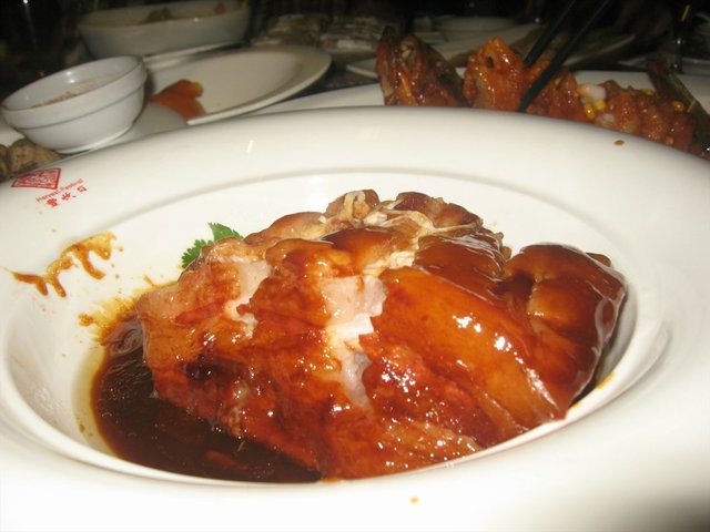 冷菜点了八个,酱萝卜、熏鱼、咸鸡、木耳、烤子鱼、蔬菜色拉、酱牛肉、桂花糖藕,总体上味道都挺不错的,印象比较深的是熏鱼,外脆里嫩。酱牛肉,切得薄薄的,牛肉很嫩,也烧制得入味。酱萝卜,脆脆的,很清爽。