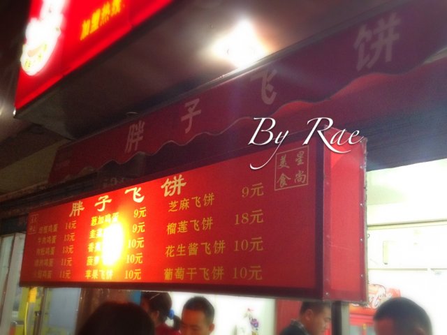 飞饼的品种很多,他家最有名的是榴莲飞饼,但是因为本吃货不吃榴莲,所以就尝试了人气也很高的培根鸡蛋飞饼