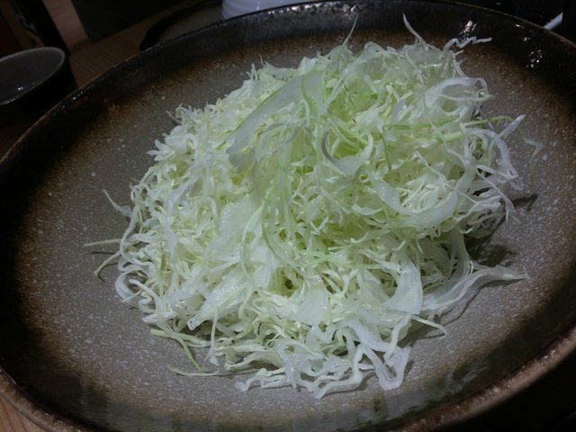 高丽菜切的很细,话说...这是拿机器切的吗?好细好细。。减肥期间的我蘸着酱吃了几筷子,哎...我还是比较喜欢吃肉TAT