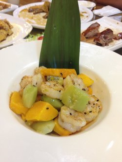 说说这个香芒奇异果虾球,色彩斑斓,摆盘用心。芒果大块,味道很甜,数量也挺多,奇异果很酸,虾球非常大,但是数目不多,整体配合着吃口感丰富。