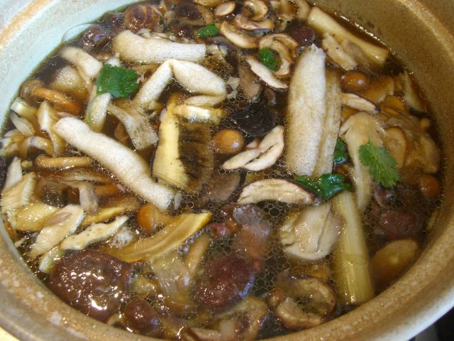 老火汤底加上11种山珍,大砂锅一直咕嘟着,汤汁越熬越浓稠,真是巨滋补,我们也是喝了一碗又一碗……