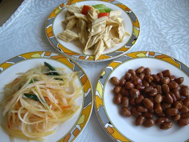 另外赠送3碟小菜:油炸花生米+苤蓝丝+拌腐竹