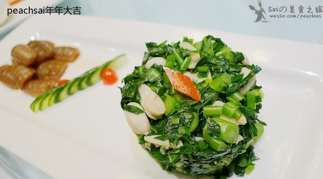 刺身拼有干冰衬托,仙啊,三文鱼、花螺片还有北极贝,沾点wasabi和酱油,不错吃,冷菜里的香芹菜北极贝中的北极贝选料也可以,都是大片切开。