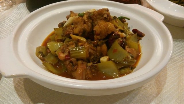 主打的是酸汤鱼,进去之后都能闻见酸的味道,但是当天比较想吃菜,决定下次有机会在来尝试下,点的土匪猪肝,上来后猪肝的味道挺重的,不过食材新鲜,带有点辣味,木耳吃起来很脆,很劲道,很下饭的一道菜。还点了份焖鸡,鸡切的很小块,骨头比较多,肉质吃起来比较嫩,配上蔬菜不怎么油腻。两位菜味道都比较偏辣,但是感觉分量比较小。