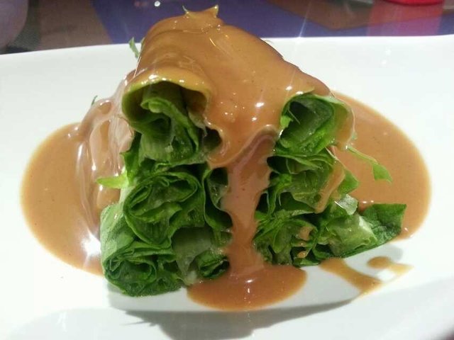 麻酱油麦菜:这个是我最喜欢吃的了!!!油麦菜里面还裹着黄瓜片,吃起来很脆爽,上面的麻酱也很香,蘸着一起吃下去很好吃的!