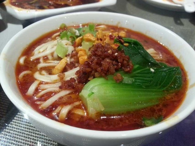 如果不要米饭的话,加3块钱可以换成担担面,我们换了两碗,本来商量4个人,就直接上4碗担担面就别加钱了,结果怎么说都不行,o(︶︿︶)o 唉,不太会变通。不过担担面的味道还是可以的,比较正