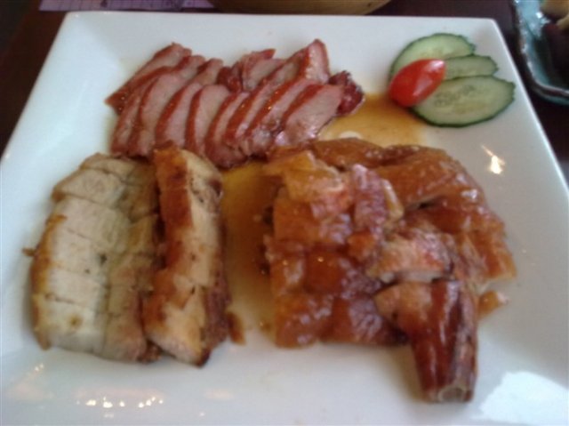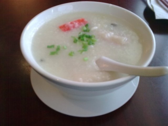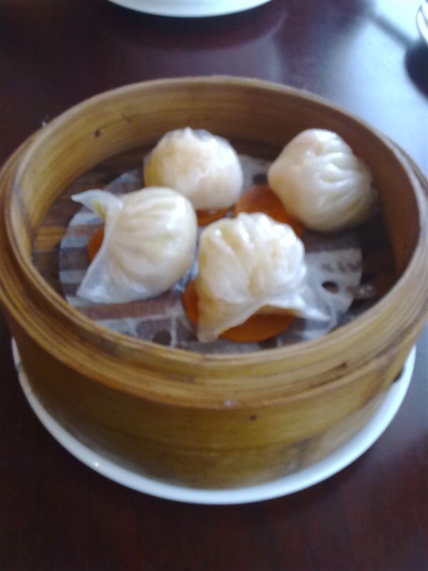 最后我们斟酌了半天,点菜时被告之:这个没有那个没有,这个太忙做不出来……本来这儿的茶点种类就不多还缺这儿少那儿的,哼!真不专业,只好临时换点其他的。最后甜甜咸咸的瞎点了几样:庄记虾饺皇(¥16.00)、 莲蓉蛋黄酥(¥10.00)、鲜榨木瓜汁(¥20.00)、荔湾艇仔粥(¥15.00)、和一份烧味三拼拼盘(¥48.00)。又没吃着肠粉,下次一定不会放过。他家的鲜榨木瓜汁不错,口感很新鲜;荔湾艇仔粥也很棒,里面有虾仁、鱿鱼、鱼片和蟹足棒,就是吃的时候要小心鱼片里面细小的鱼刺;庄记虾饺皇味道最棒,外皮晶莹剔透,里面的虾仁个头很大、肉质饱满,所以我们决定在来一笼。两个女生一共吃了¥125.00,性价比不算高,适合逛街逛累了、逛饿了去坐坐,喝个下午茶吃点小点心垫垫底。