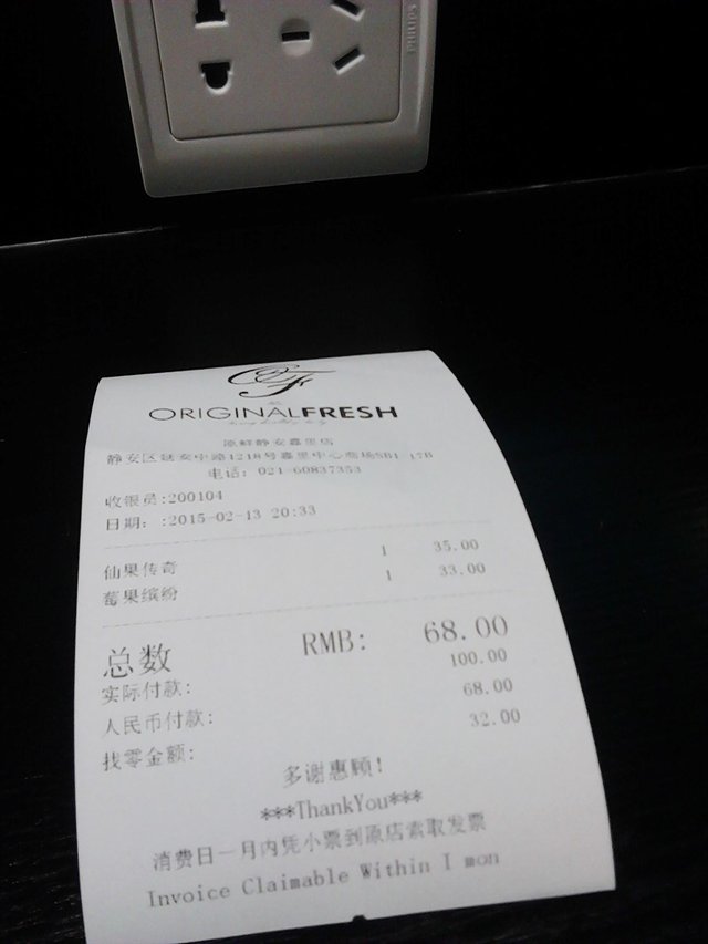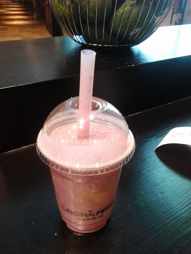 莓果缤纷@original fresh 甘之如怡等级42015-02-148 浏览 关注 和闺蜜在嘉里中心楼上的百美汇看完电影,到地下室喝点饮料。这家鲜榨果汁,黑白的布置,显得比类似的店“高大上”些,确实连价格也“高大上”不少,不过他们家生意还是挺好的,地段的关系吧。 闺蜜点了鲜果传奇,35块,里面是奇异果神马的。我点了莓果缤纷,33块钱,里面有草莓、蓝莓、香蕉、燕麦神马的。当场制作,店堂里有七八个位子吧,做好了,会帮你送过来。我的莓果缤纷,呈淡粉色,卖相挺不错的,加了奶制品,所以喝起来比较浓稠,虽说放了几款水果,但是香蕉的味道最浓,盖过了其他“莓”的味道。 喝完,闺蜜说开张发票,刮奖碰碰运气,结果他们家的发票是不能当场给的,要把你信息记下来,你过几天再去拿。闺蜜说几个月前她来喝,也是这个情况。这个对于不经常经过这里的人来说,不太方便啦。莓果缤纷¥33以上食记乃用户个人意见 , 并不代表OpenRice之观点。赞好分享莓果缤纷@original fresh Original Fresh https://s.openrice.com/KtLT100MvSE00检举 张贴 评分4味道4环境3服务4卫生3抵食推介美食莓果缤纷¥33用餐途径堂食