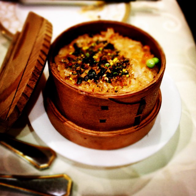 鲑鱼饭,装在井状的木制盛器里,鲑鱼鲜美配上香软的糯米很是可口,价格才18元一位,真是出乎预料的便宜。