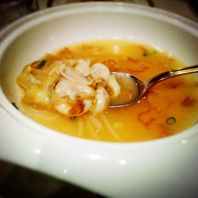 浓汤鲍鱼,鲍鱼切成薄片非常入味,汤浓稠鲜美,好喝。