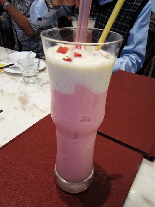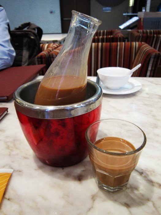 原味冻奶茶:是一樽的,放在酒红色的圆桶里,冰镇着,丝滑香醇,量也多,大家可以share一下