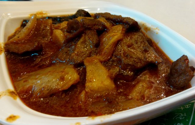 烧牛肉看着不多,因为汤汁浓重,倒是非常下饭,里面有大块的牛肉,大概四、五块的样子,另外还有一些煮得很烂很入味的洋葱,香味较浓,味道偏咸,女生吃的话肉的量基本够了。