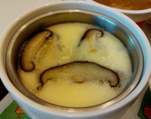 他家蛋羹很香滑,直接吃,拌米饭都不错,里面还有几片香菇片,营养丰富,口感上也比较嫩滑。