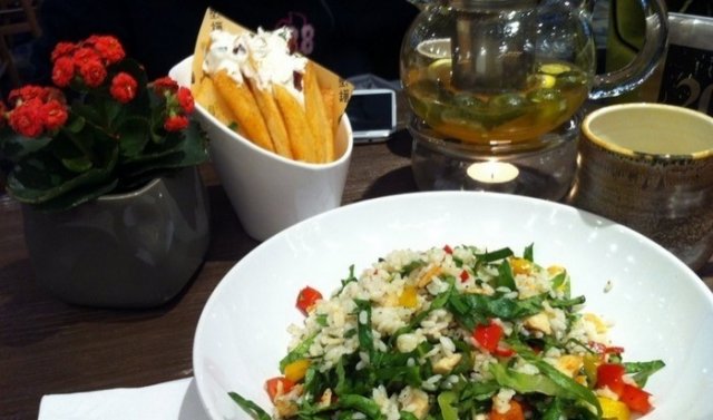 最近一次是年前去 点了烤鸡米饭沙拉 酸奶油薯条和金桔柠檬茶