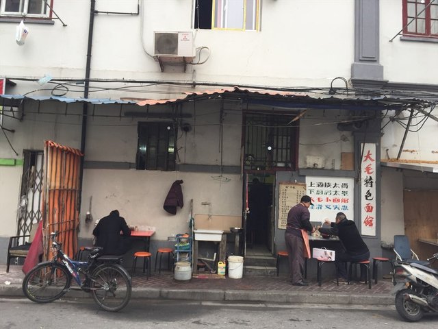 居民楼下 只见招牌未见门牌的“大毛特色面馆”