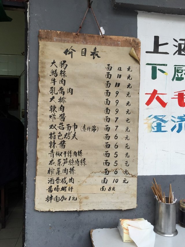 一看价格 单一浇头面5元起 炸酱面7元 腐乳肉面9元 哪怕双浇面 也就十几元打到南天门 拌面需要再加一元