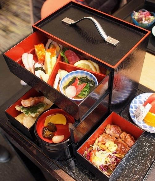这里午餐好像是有两种价位的便当,当然是贵的那种食材更丰富一些。便当盒很有意思,每打开一层抽屉都有很惊喜的感觉。便当的量很足,如果是女孩子饭量不大的话,两个人吃一份也可以。
