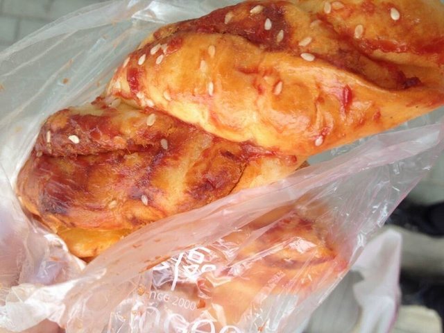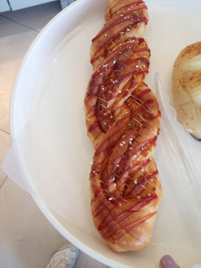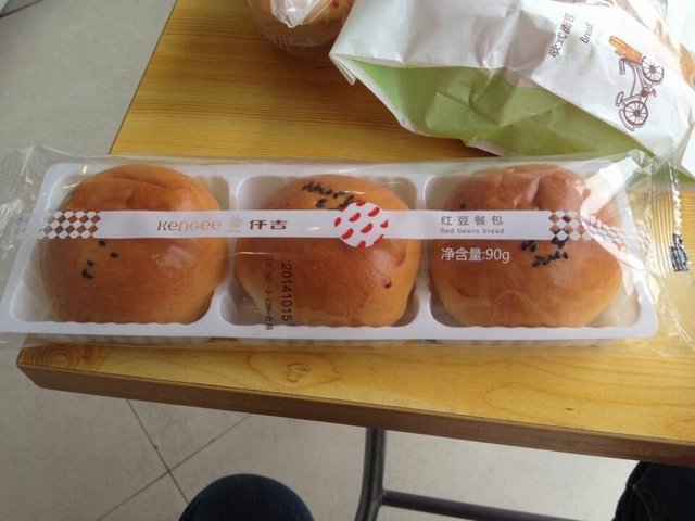 红豆餐包价格最便宜,3个圆面包5元钱,样子最普通,面包撒了点黑芝麻,里面夹着一坨红豆泥,味道说不上有多特别,毕竟这款调理面包很普遍别家做的也差不多。、