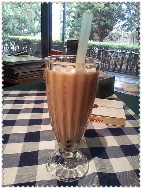 原味珍珠奶茶~ 很大的一杯,调制的还不错,味道香浓但又不甜腻,口感也是滑滑的,珍珠的个头有点大,几次都被卡在那个其实很粗的吸管里面,呵呵~