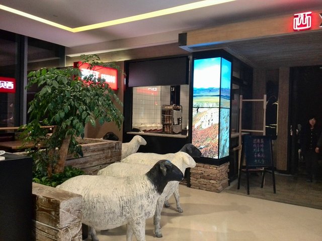 店门口的牛羊造型,已经广而告之:她家是主打西北菜、莜面、羊肉、羊棒子等等美食的,哈哈~想想就让人流口水吧~