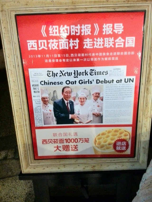 她家位于城西银泰楼,门面很大,容易找,因为随处可见“联合国走进西北”的宣传语和联合国秘书长潘基文的合影宣传照,不容人忽视啊!