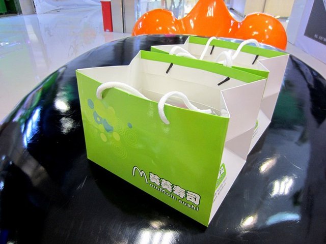 带为了提着方便,自己还是把两盒寿司和两厅饮料装在了一起。