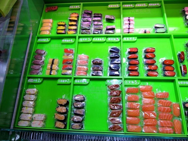 寿司的米的口感比较软糯,种类还是算比较常规。