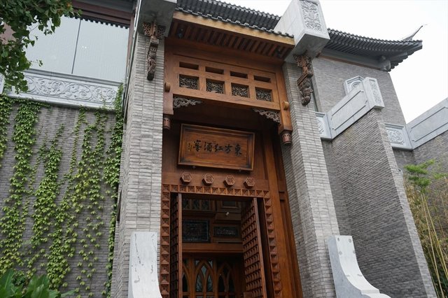 通往酒窖的玄关处,东方红酒窖的LOGO闪闪发光。